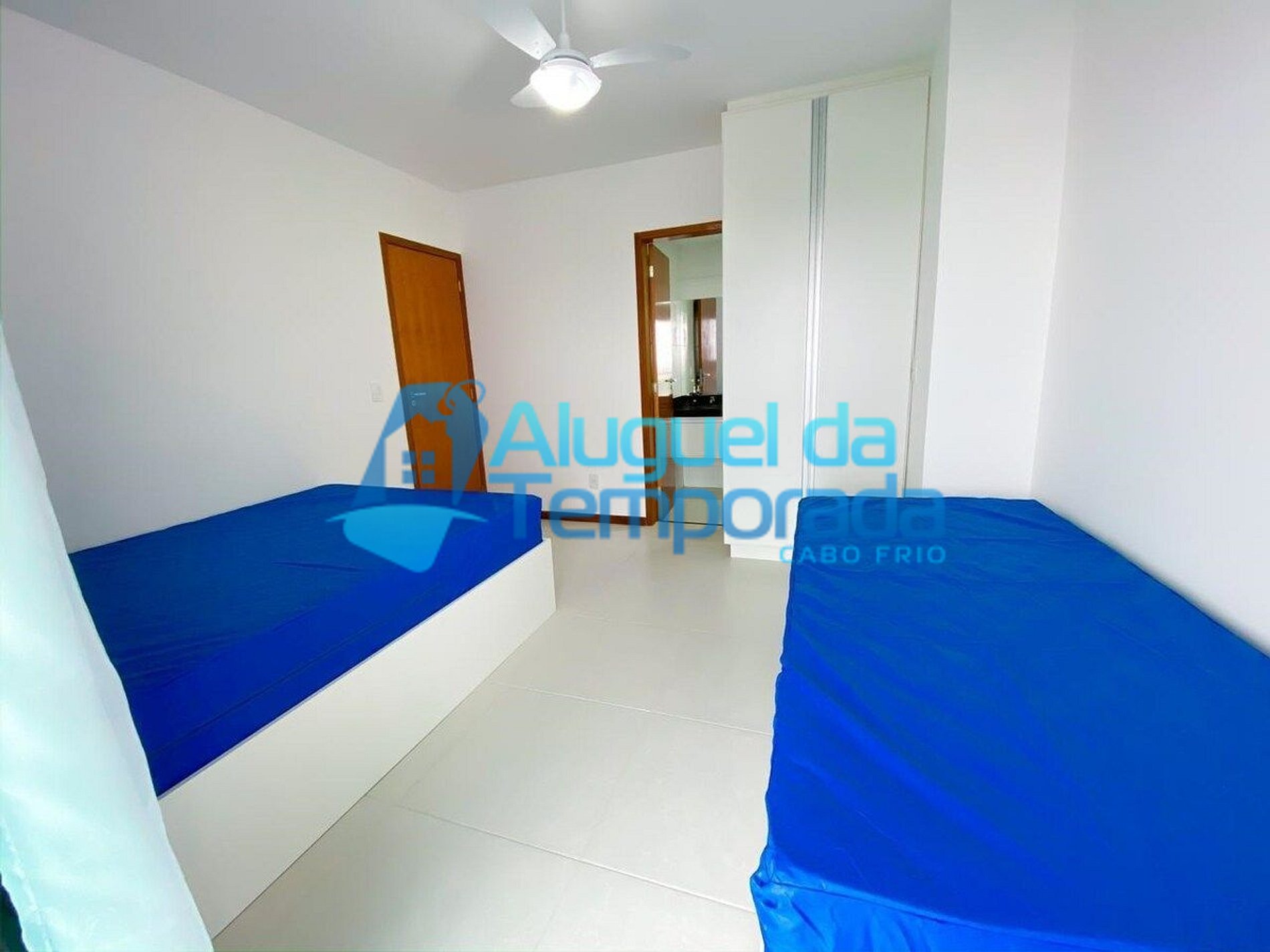 1 Suíte completa (1 Cama de casal, 1 Bi-cama, Ventilador de teto, Travesseiros, Guarda-roupas, Ferro de passar roupas)