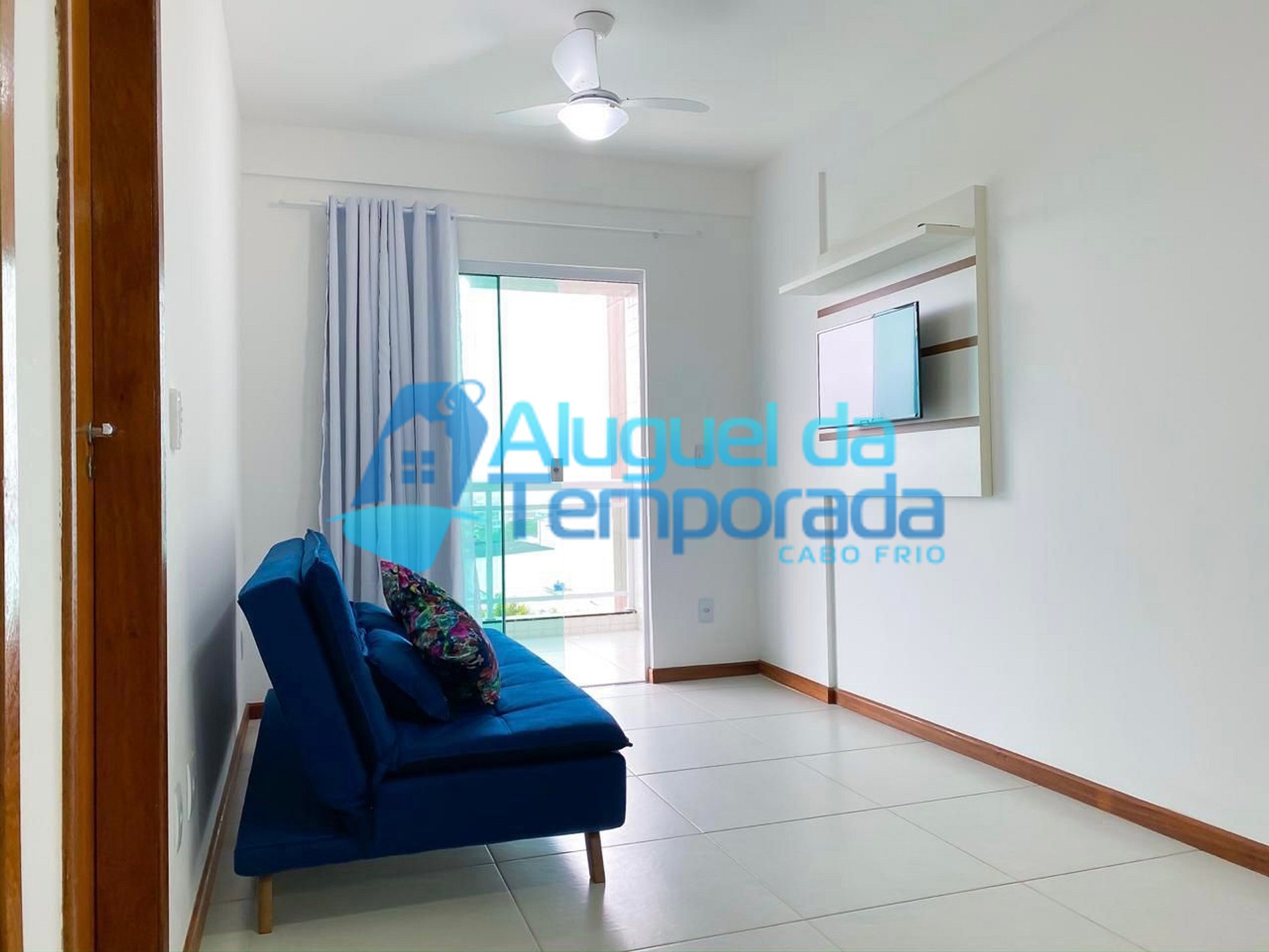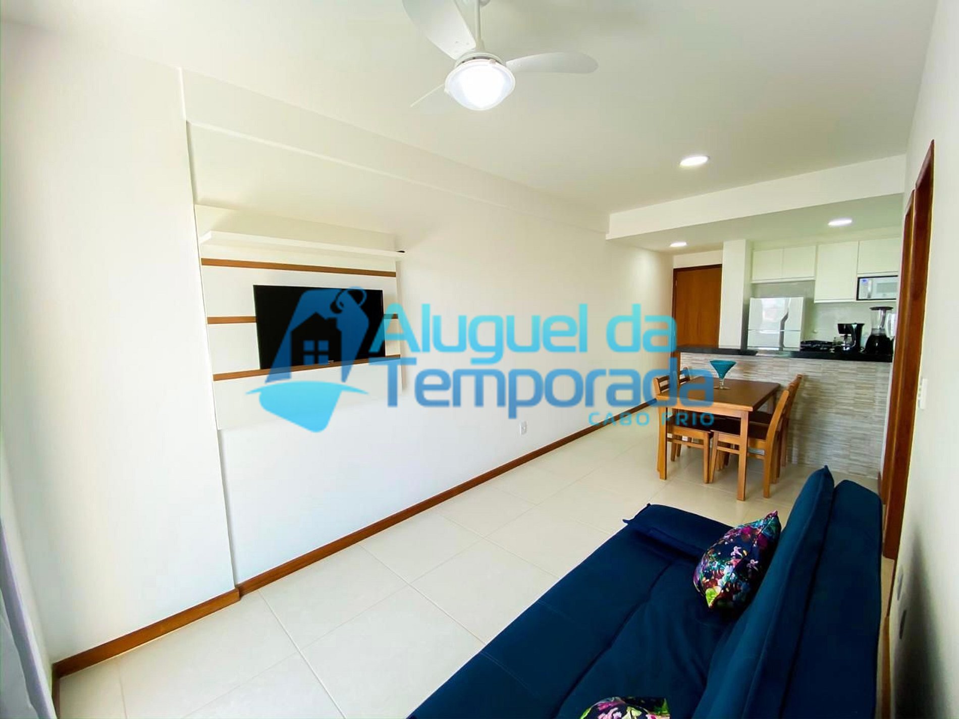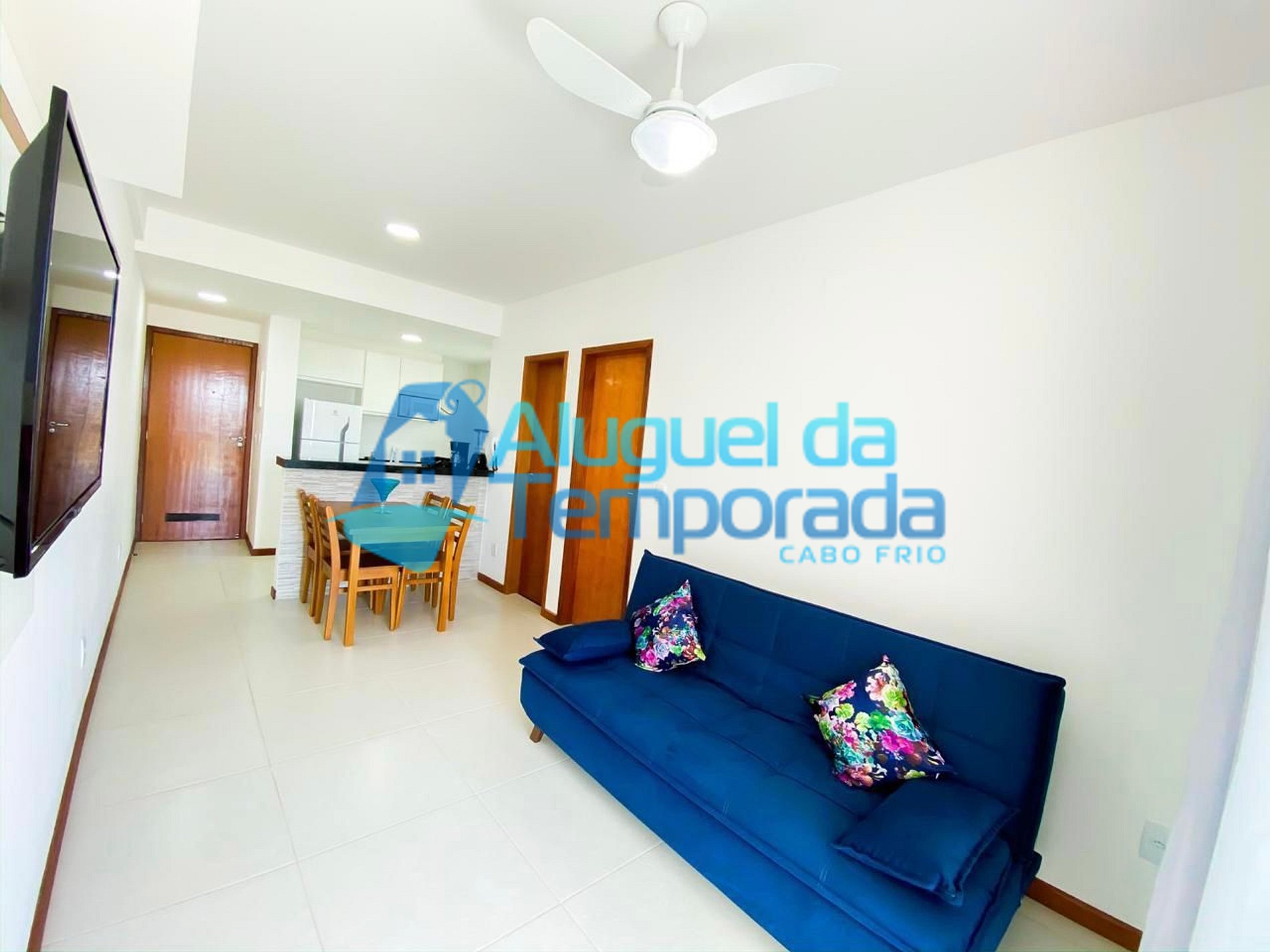 Sala 2 ambientes (sofá-cama, Ventilador de teto, Mesa de jantar com 4 cadeiras, Smart TV)